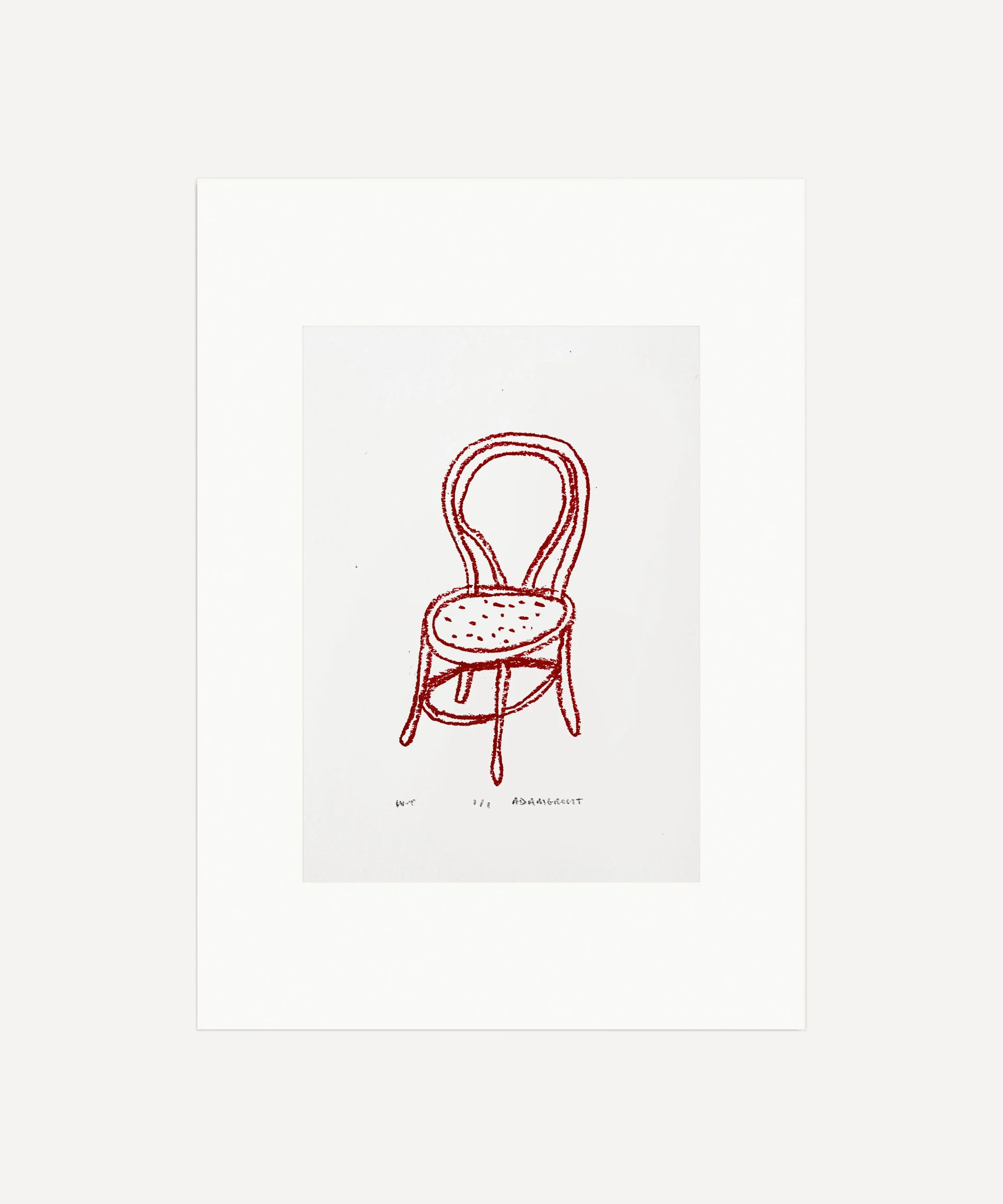 Purple Thonet crossback chair. Original oil pastel on paper (2025)
